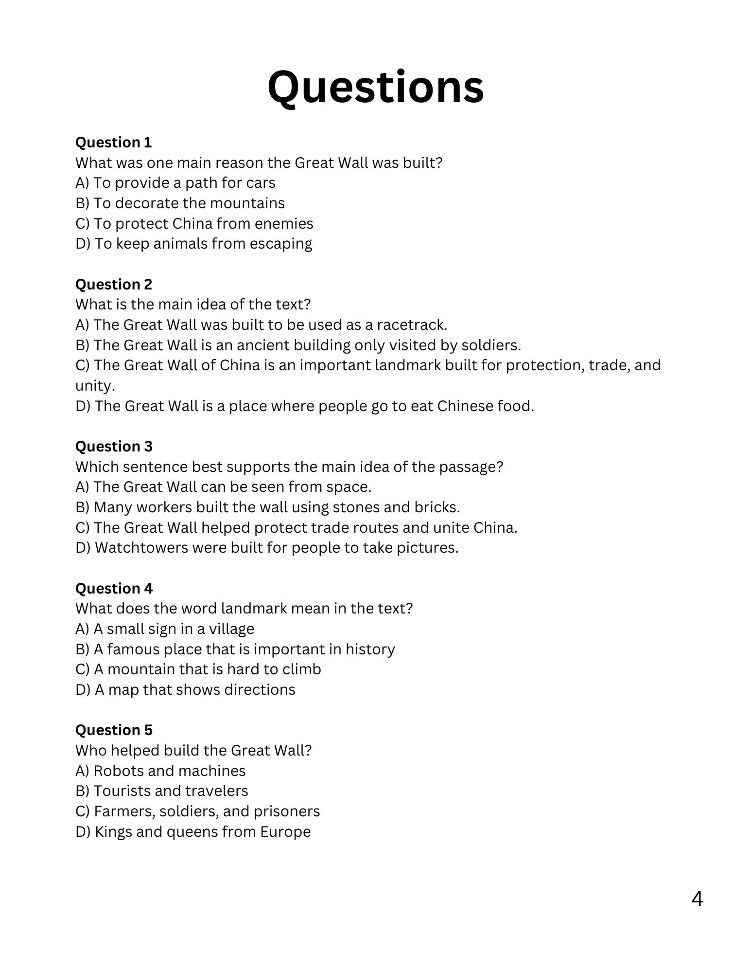 Wiz Kids Reading Test Grade 4: Famous Landmarks Around the World