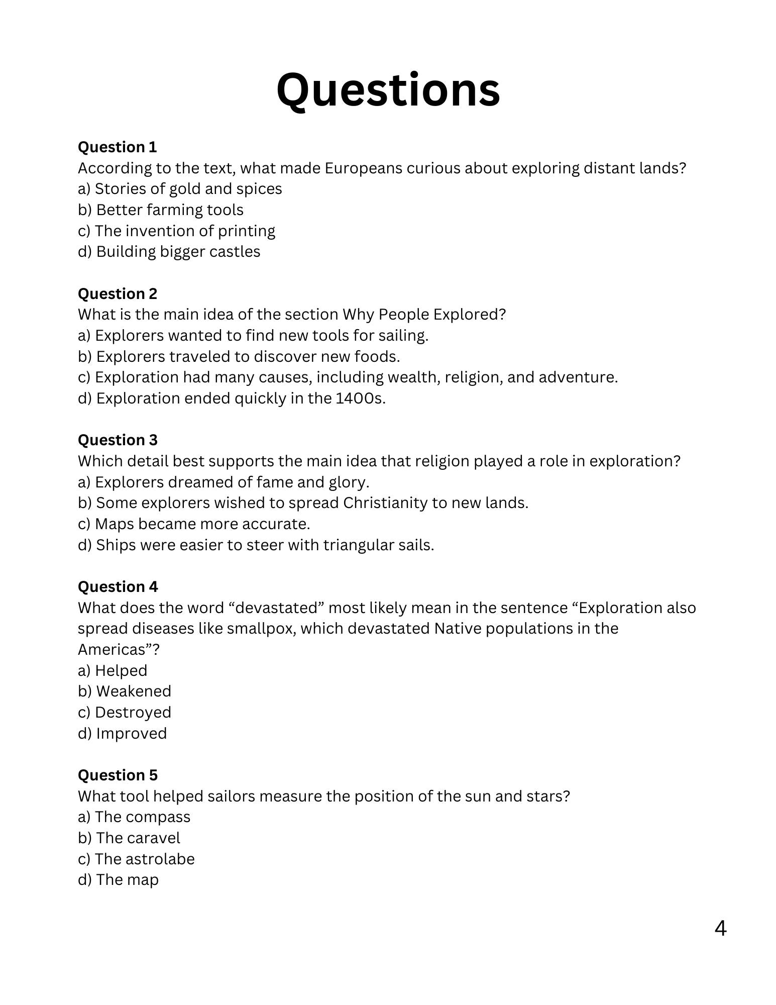 WIZ KIDS READING TEST GRADE 5: Explorers of the World