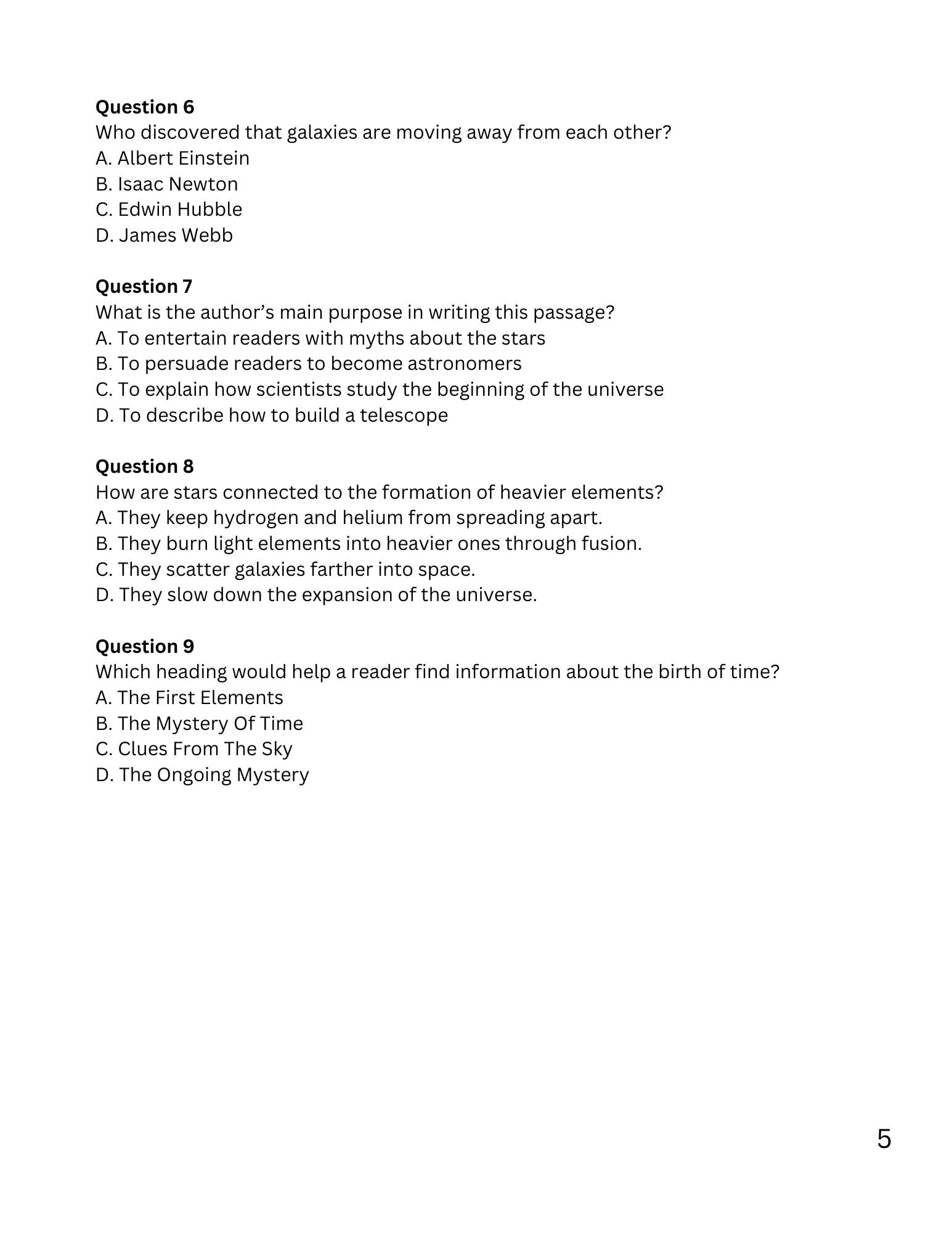 WIZ KIDS READING TEST GRADE 5: Mysteries Of Outer Space